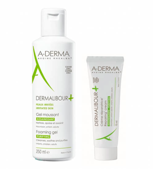 Dermalibour+, o reflexo quando a pele "está vermelha, dá comichão ou pica". Dedicada às peles frágeis irritadas*, Dermalibour+ purifica graças à sua fórmula com cobre/zinco, acalma graças à Aveia Rhealba® e favorece a reparação.